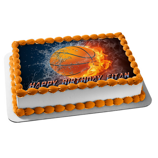 Basketball Fire Ice Edible Cake Topper Image ABPID07628