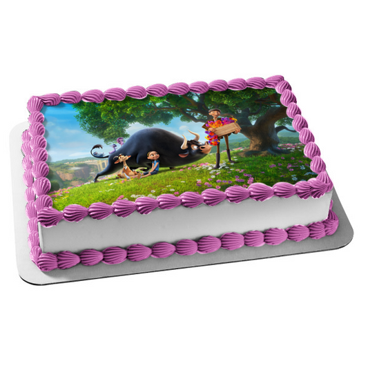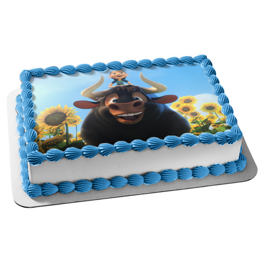 Ferdinand the Bull Nina and Sunflowers Edible Cake Topper Image ABPID06451