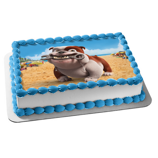 Rio Luiz Bulldog Mechanic with a Wrench on the Beach Edible Cake Topper Image ABPID00455