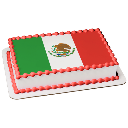 Flag of Mexico Green White Red Stripes Coat of Arms Edible Cake Topper Image ABPID13303