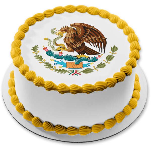 Decorate your Cake with this Mexican Flag themed Edible Cake Topper Image featuring the National Coat of Arms Center!