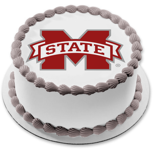 Mississippi State Athletics Logo Red White Edible Cake Topper Image ABPID01594