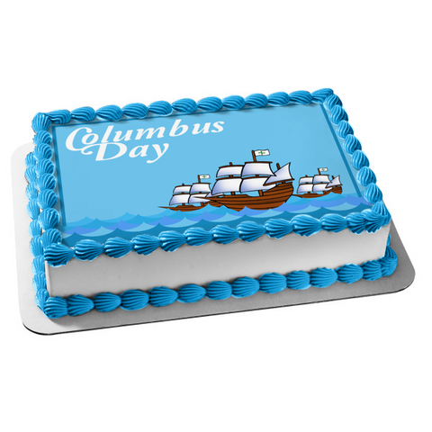 Happy Columbus Day Niña Pinta Santa Maria Sailing Americas Edible Cake Topper Image ABPID13035
