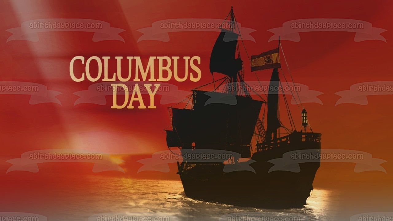 Decorate your Cake with this Columbus Day themed Edible Cake Topper Image featuring an Explorers Ship!