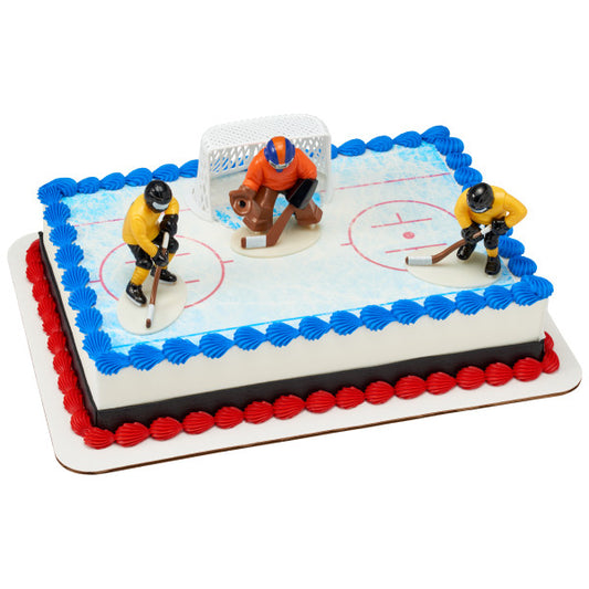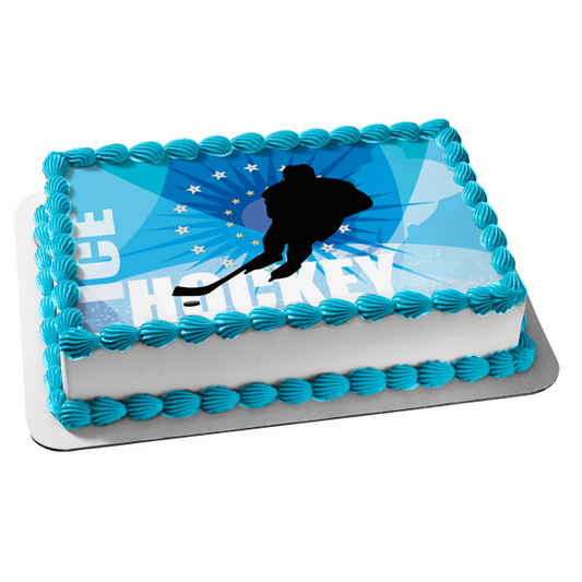 Sports Ice Hockey Player Hockey Stick Puck Stars Edible Cake Topper Image ABPID13313