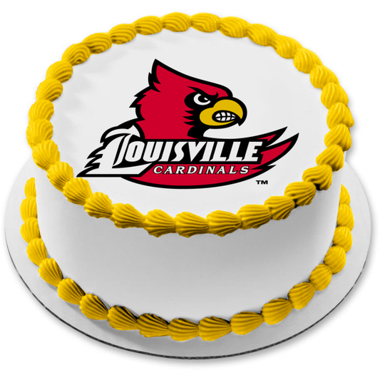 Louisville Cardinals Cards Logo University of Louisville NCAA College Sports Edible Cake Topper Image ABPID04947