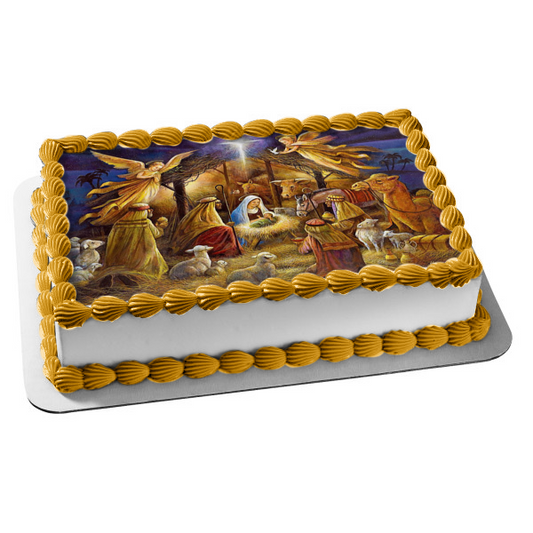 Nativity Scene Merry Christmas Happy Birthday Jesus Edible Cake Topper Image ABPID53105