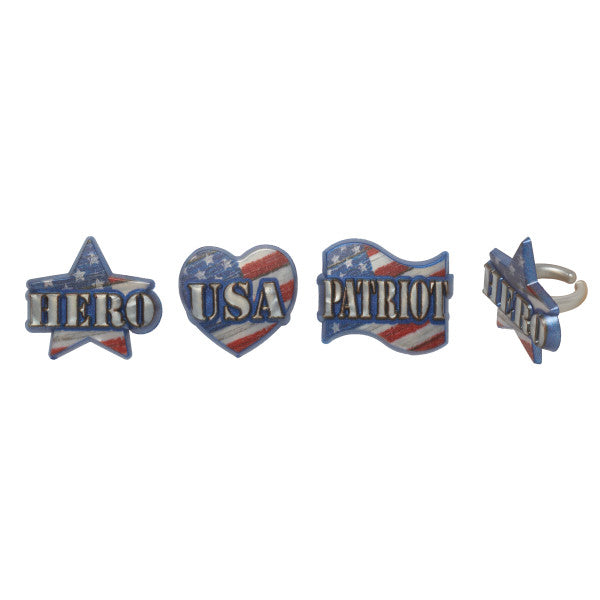 Assortment of USA, Hero and Patriotic vintage flag cupcake rings.