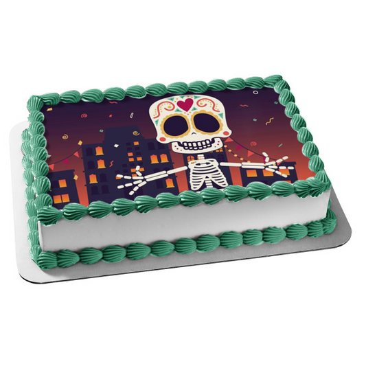 Happy Halloween Sugar Skeleton Edible Cake Topper Image ABPID52685
