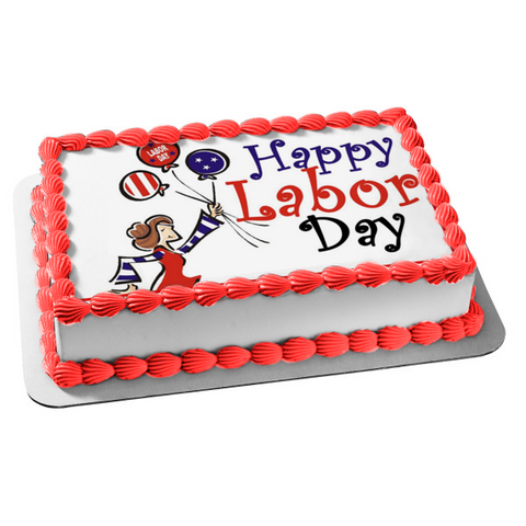 Happy Labor Day Balloons Edible Cake Topper Image ABPID54189