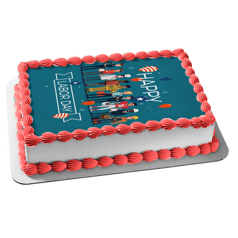 Happy Labor Day Workers Balloons Edible Cake Topper Image ABPID54187