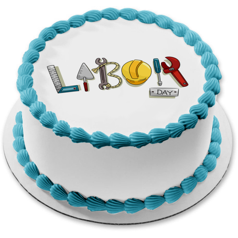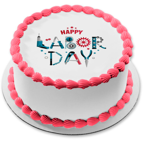 Happy Labor Day Work Tools Edible Cake Topper Image ABPID56466