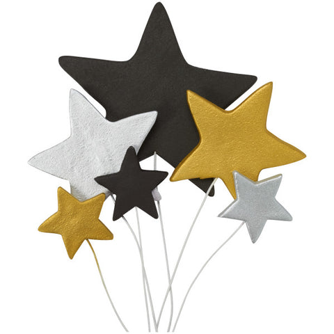 Gold, Silver & Black Stars Gum Paste Layon