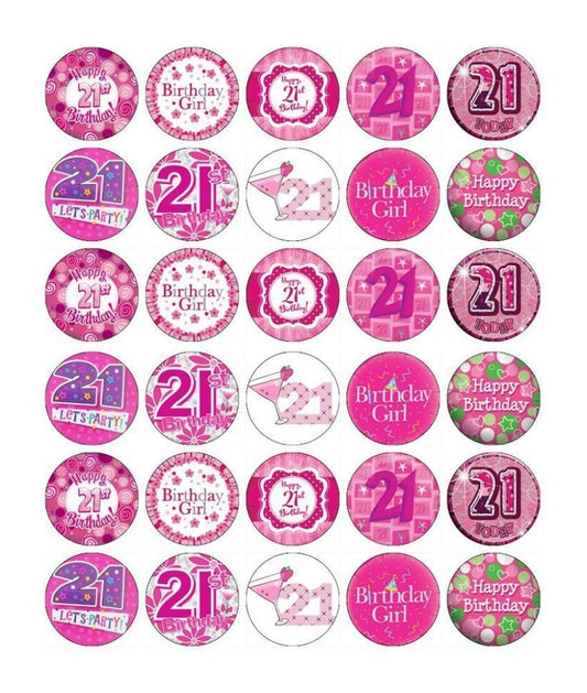 Imágenes comestibles para decoración de cupcakes, feliz cumpleaños, 21.o cumpleaños, niña, ABPID04461