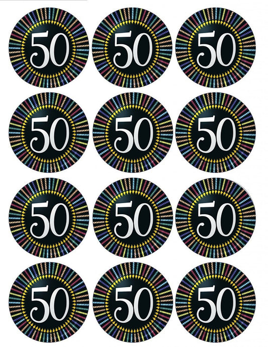 50 cumpleaños número cincuenta velas en espiral coloridas fondo negro imágenes comestibles para cupcakes ABPID09102