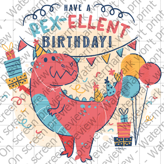 ¡Que tengas un cumpleaños Rex-Elent! Imagen de adorno comestible para pastel
