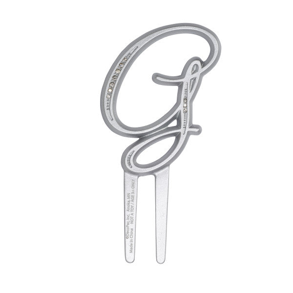 Los monogramas tienen un acabado plateado y detalles de diamantes de imitación transparentes y brillantes. Cada uno presenta picos en la parte inferior para una fácil inserción en los pasteles. Disponible en tamaños grandes y pequeños. La altura no incluye pico.