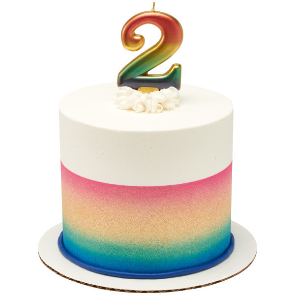 Esta brillante vela con números metálicos y arcoíris llama la atención y puede alegrar cualquier celebración. 1 vela por paquete.