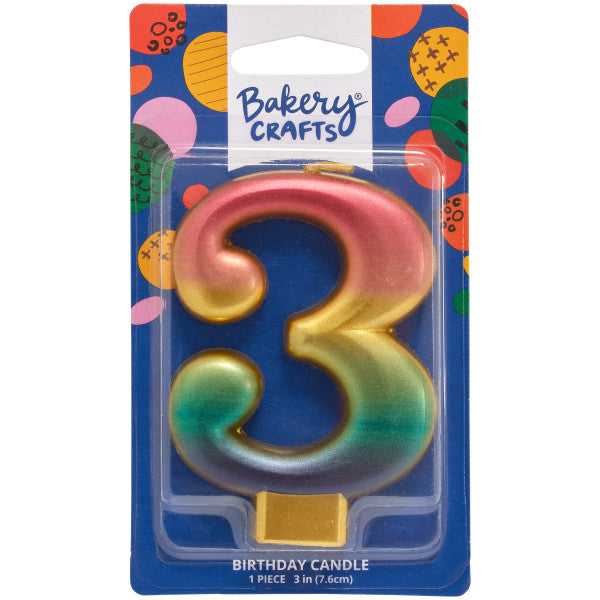 Esta brillante vela con números metálicos y arcoíris llama la atención y puede alegrar cualquier celebración. 1 vela por paquete.