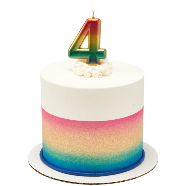 Esta brillante vela con números metálicos y arcoíris llama la atención y puede alegrar cualquier celebración. 1 vela por paquete.