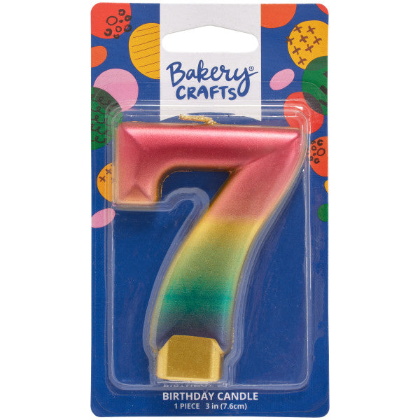 Esta brillante vela con números metálicos y arcoíris llama la atención y puede alegrar cualquier celebración. 1 vela por paquete.