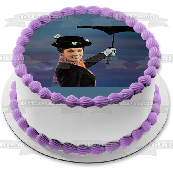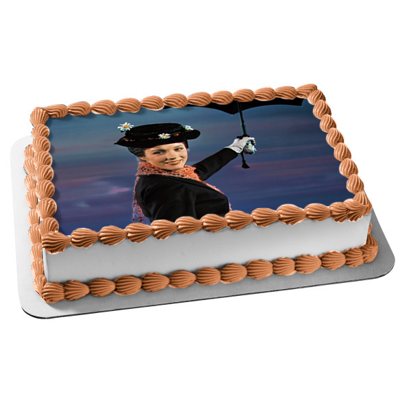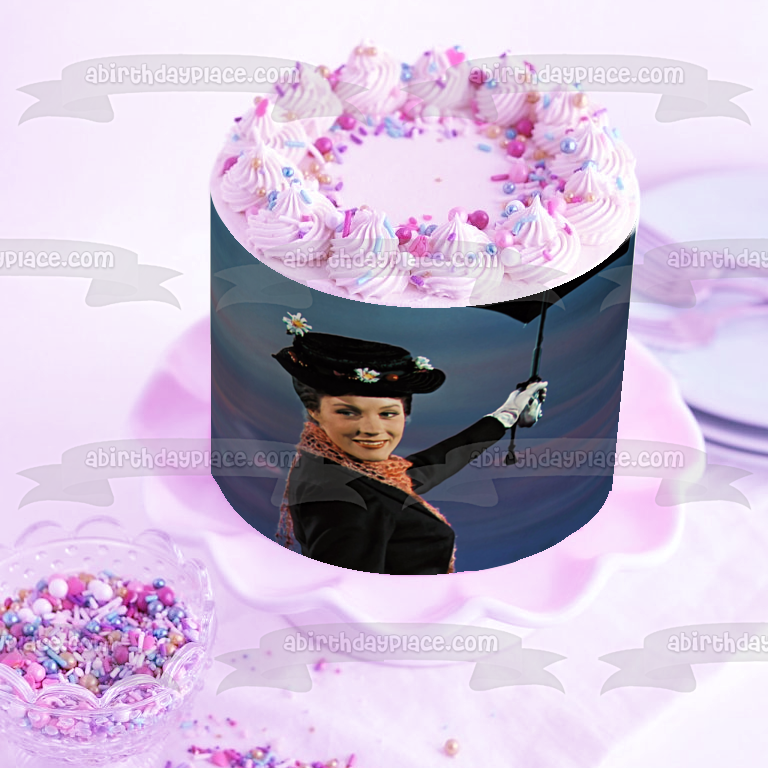 ¡Decora tu pastel con esta imagen de adorno comestible para pastel con temática de Disney que presenta a Mary Poppins con su paraguas!