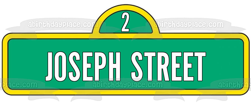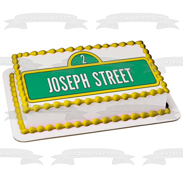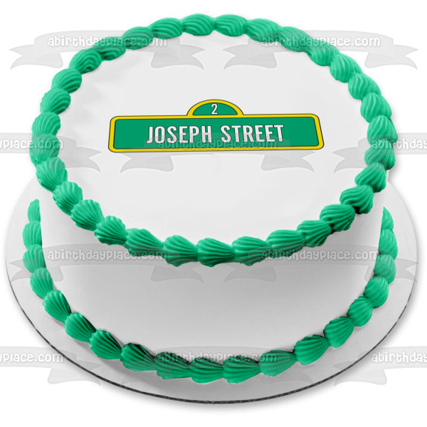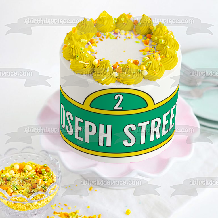 ¡Personaliza tu pastel con esta imagen de adorno comestible para pastel con temática de Barrio Sésamo que presenta el logotipo de Street Sigh con tu mensaje personalizado!