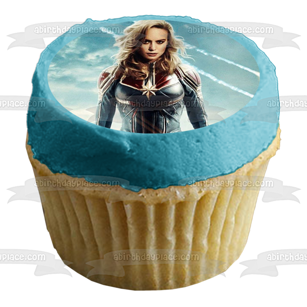 ¡Celebra a tu fanático de los superhéroes con esta imagen de adorno comestible para pastel con el Capitán Marvel!