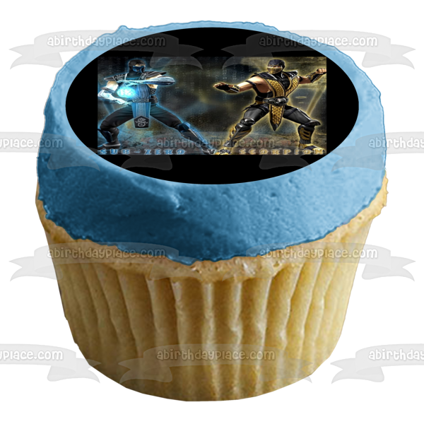 ¡Celebra a tu fan de Motal Kombat con esta imagen comestible para decoración de tarta con Sub-Zero y Scorpion!