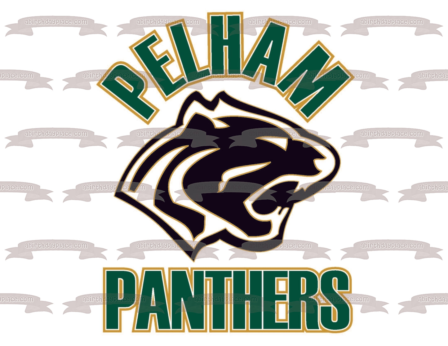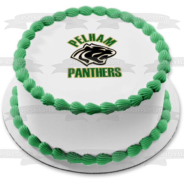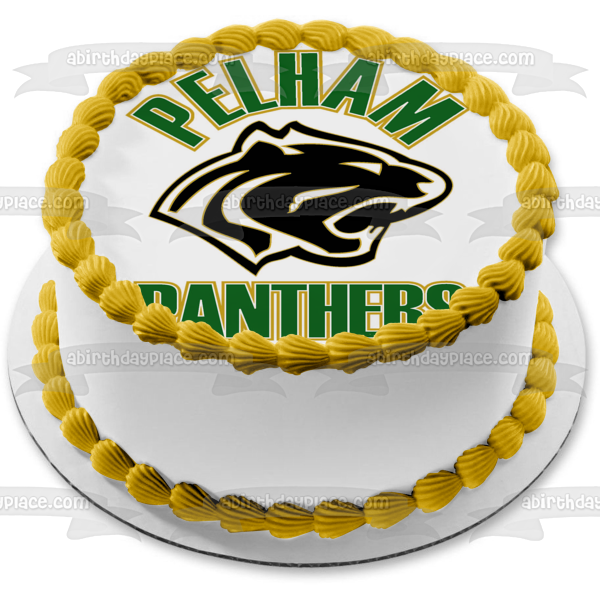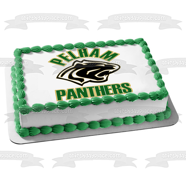 ¡Celebra a tu fanático de los deportes con esta imagen de adorno comestible para pastel con temática de Pelham Panthers High School que presenta su logotipo!
