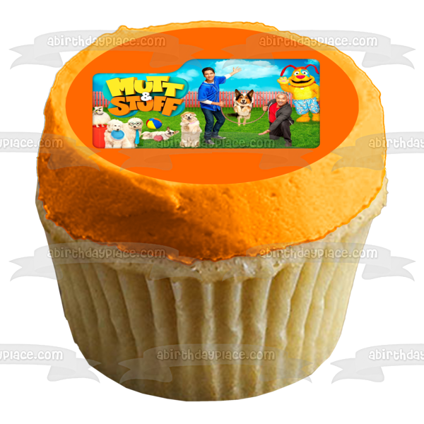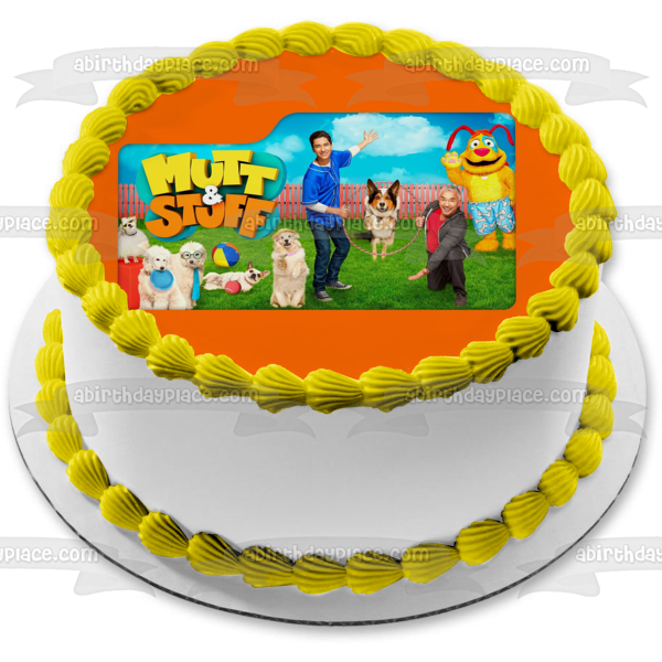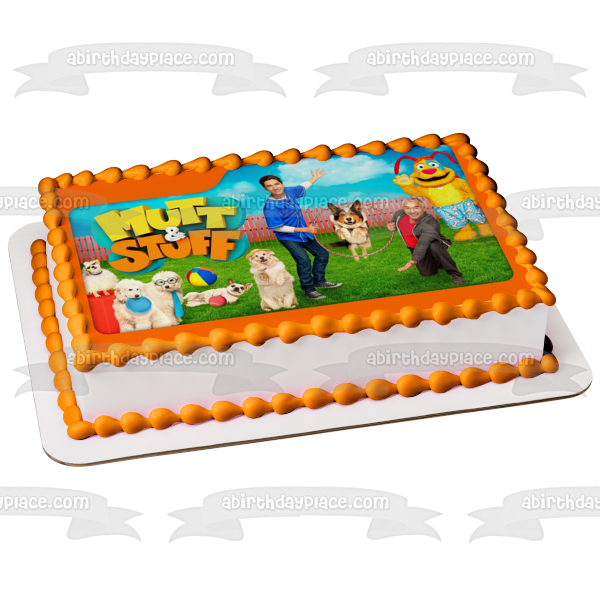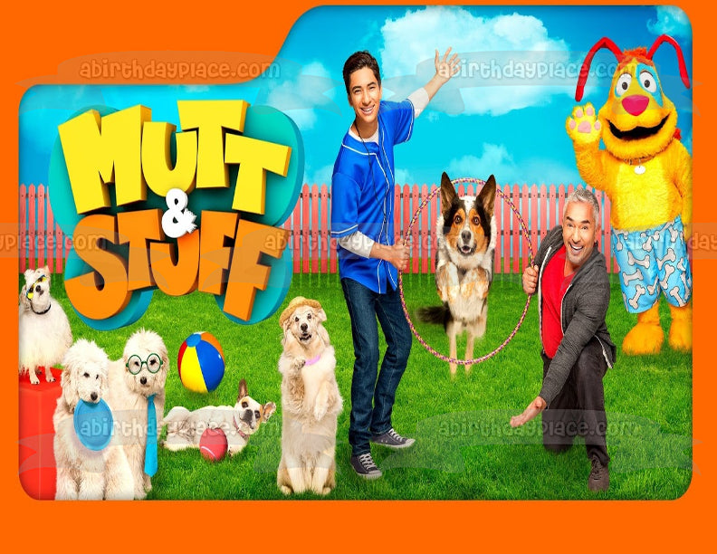 ¡Decora un pastel con esta imagen de adorno comestible para pastel con temática de Mutt & Stuff que presenta a César y Calvin!