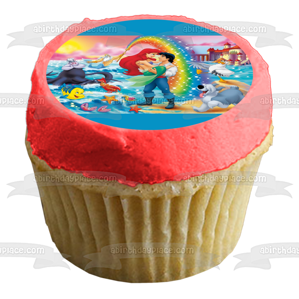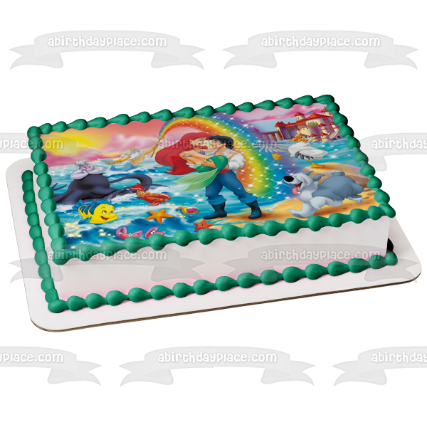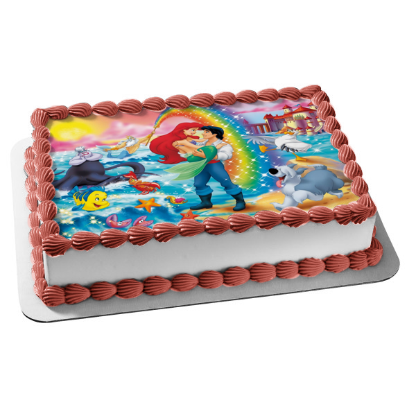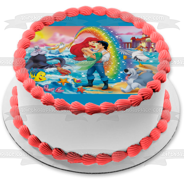 ¡Celebra tu ocasión especial con esta imagen de adorno comestible para pastel con Ariel y Eric de La Sirenita!