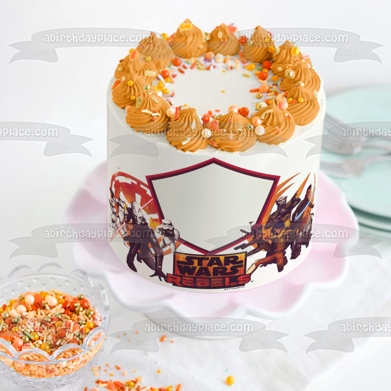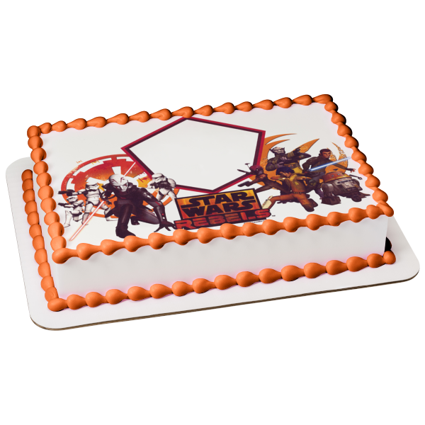¡Personaliza tu pastel con esta imagen de adorno comestible para pastel con temática de Star Wars Rebels que presenta a Ezra Bridger, el Gran Inquisidor y Kanan Jarrus!