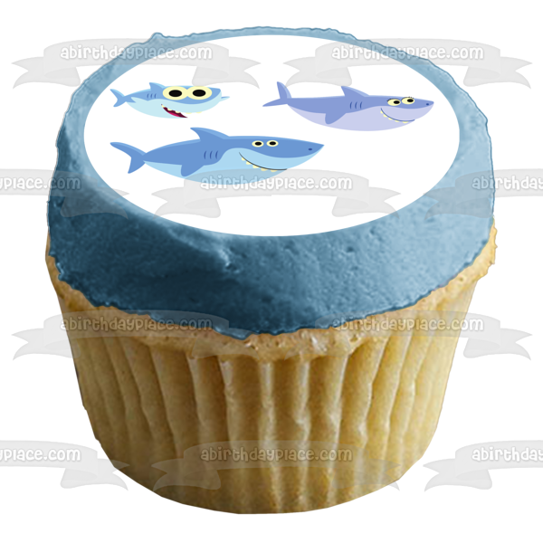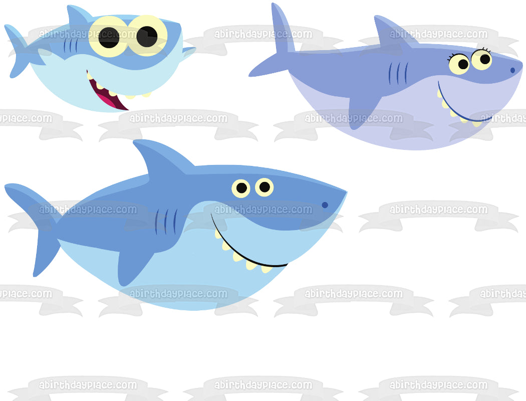 Familia de tiburones dibujos animados mamá papá y bebé adorno comestible para tarta imagen ABPID07981