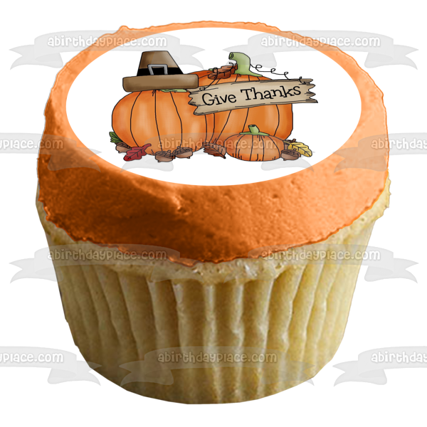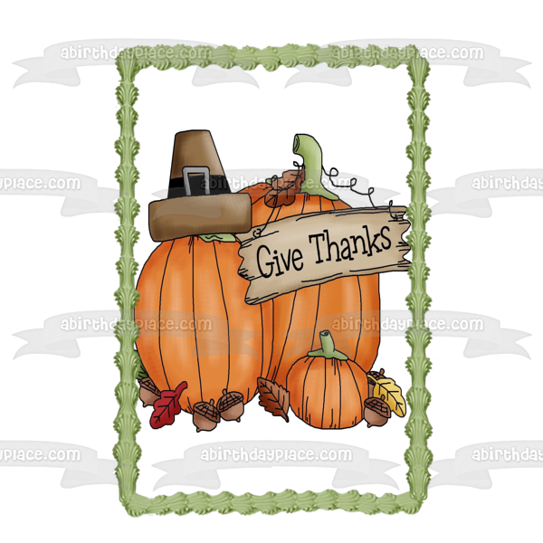 Feliz Día de Acción de Gracias Da Gracias Calabazas Bellotas Imagen comestible para tarta ABPID08795
