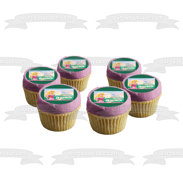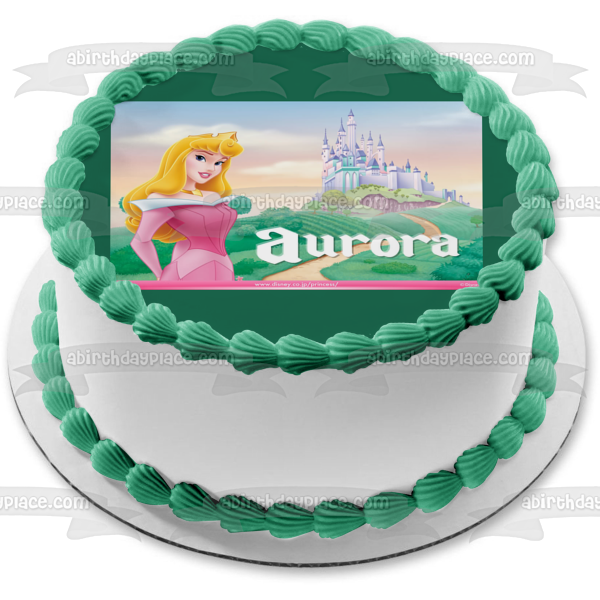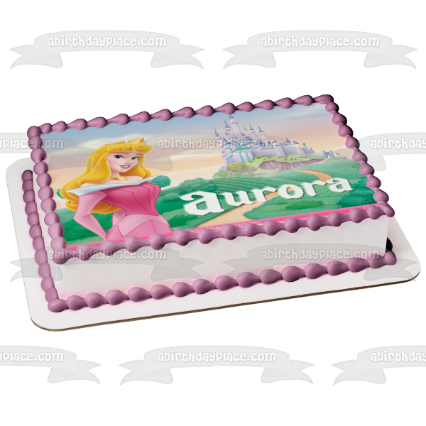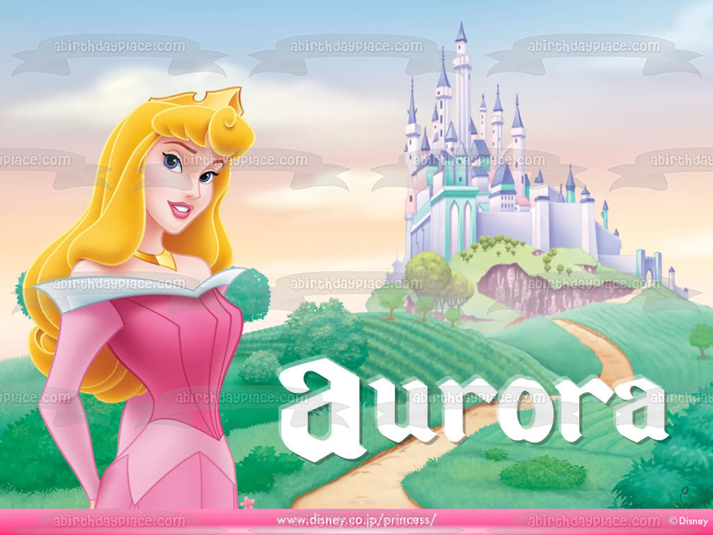 ¡Decora tu pastel con esta imagen de adorno comestible para pastel con temática de Princesas de Disney que presenta a Aurora de La Bella Durmiente con un vestido rosa!