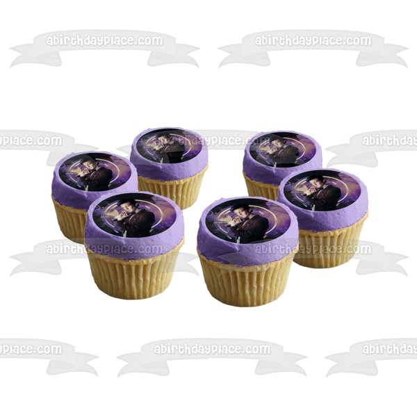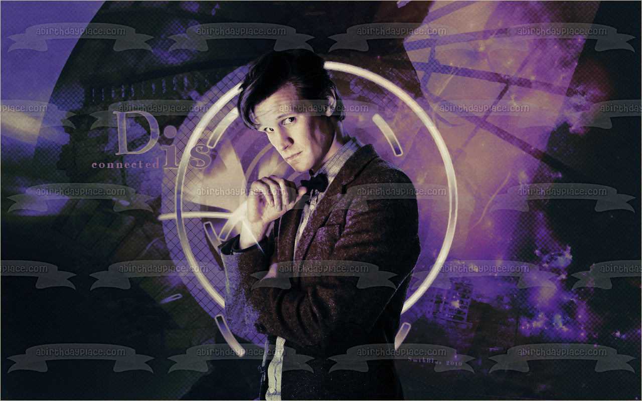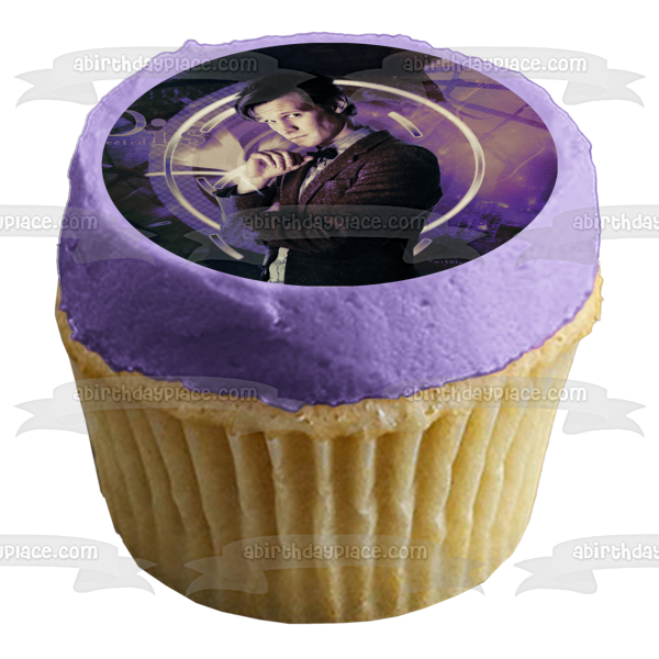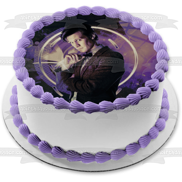 Imagen de decoración comestible para tarta con fondo morado y negro de Doctor Who ABPID09235