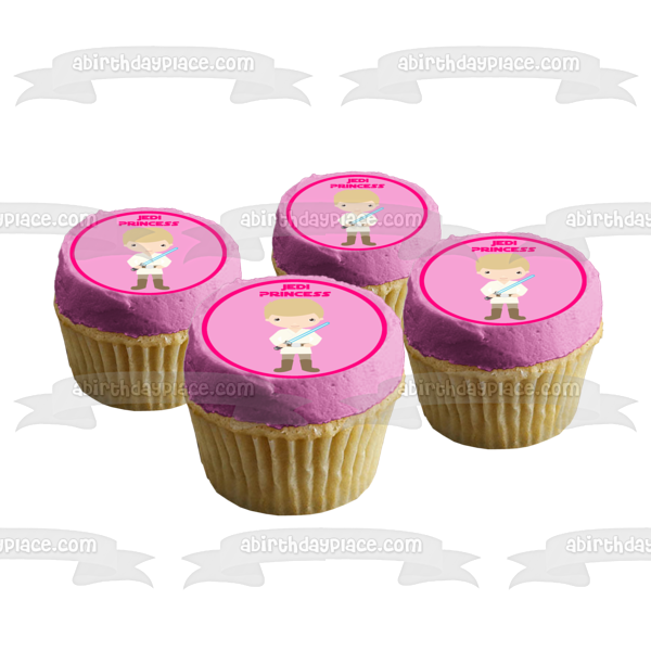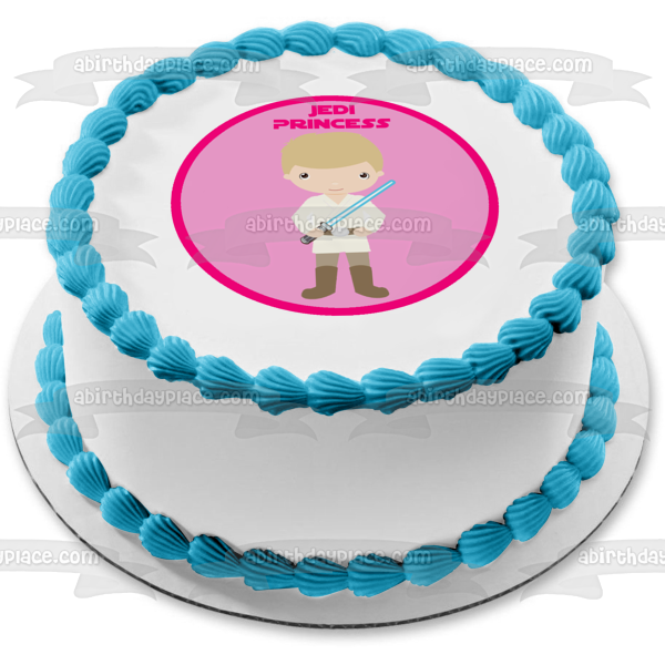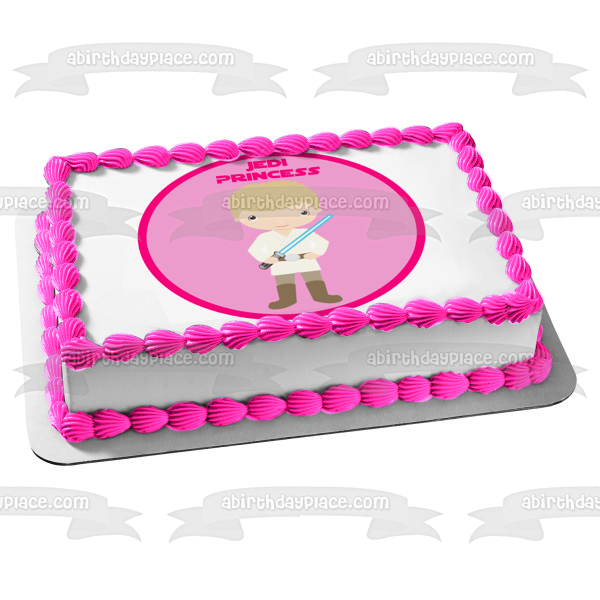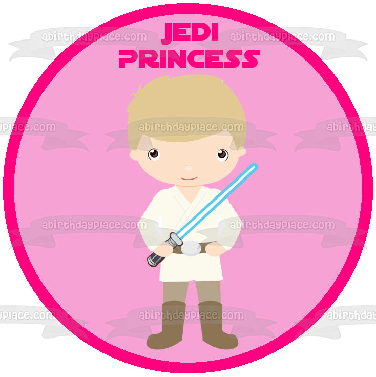 Star Wars Dibujos animados Anakin Skywalker Sable láser Princesa Jedi Fondo rosa Imagen comestible para decoración de tartas ABPID12716