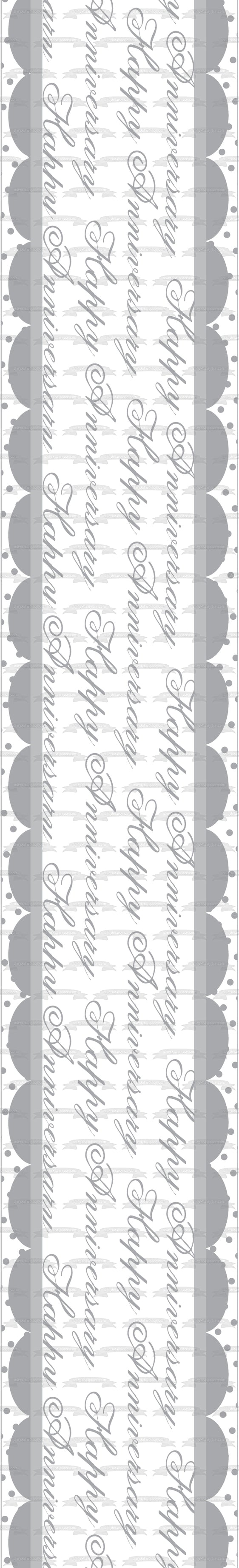 Decora tu pastel con esta imagen de adorno comestible para pastel con temática de feliz aniversario que presenta semicírculos grises y lunares.
