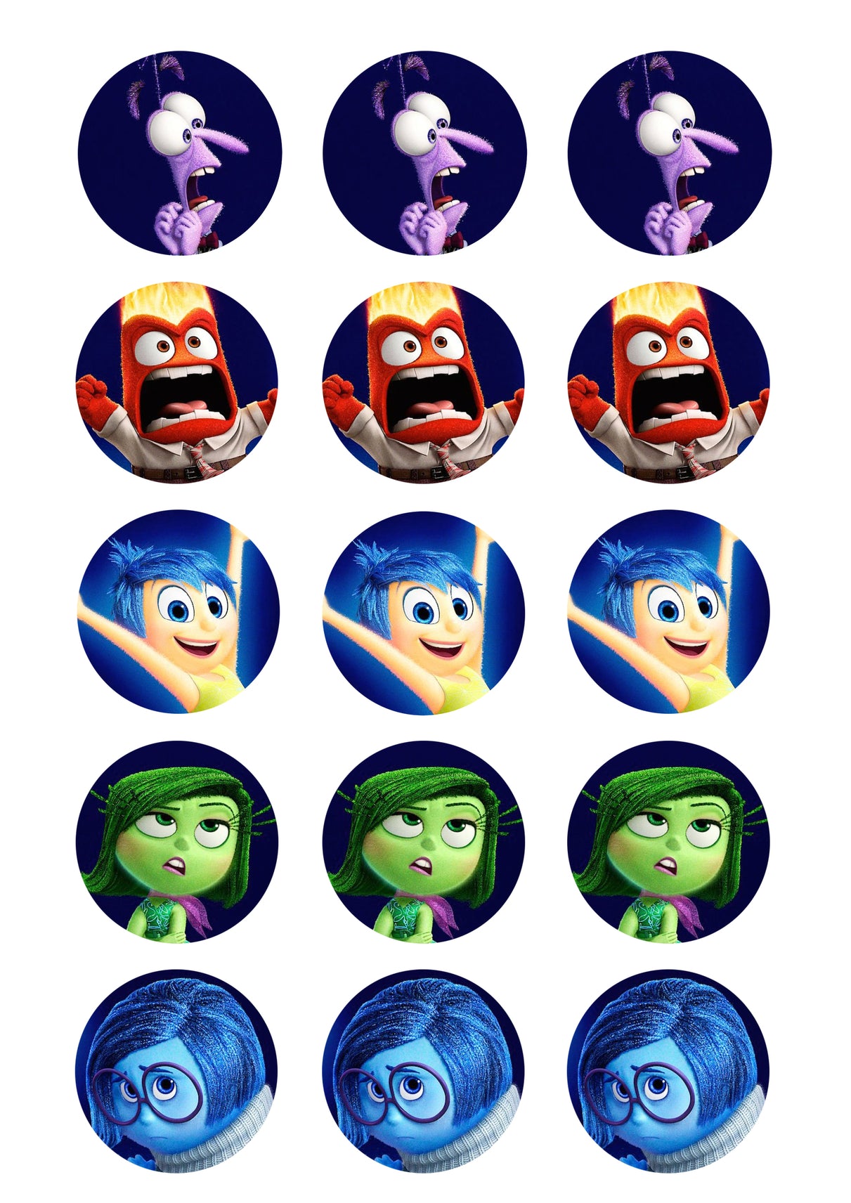 Inside Out Alegría Tristeza Disgusto Miedo Ira Imágenes comestibles para cupcakes ABPID14849