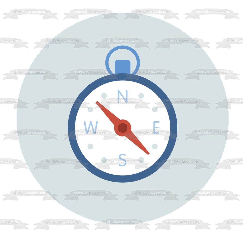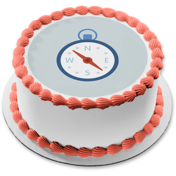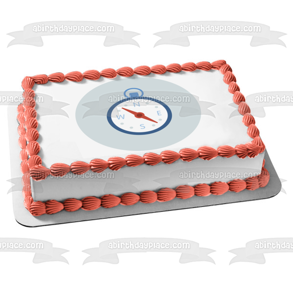 ¡Decora tu pastel con esta imagen de adorno comestible para pastel con temática de dibujos animados que presenta una brújula con un fondo azul!
