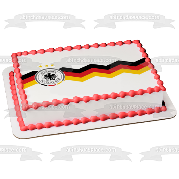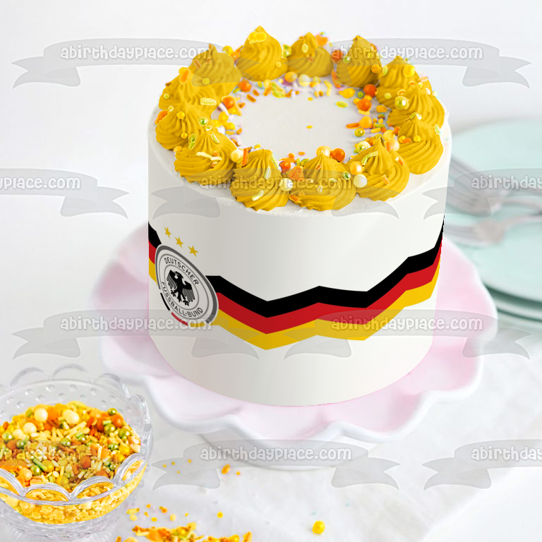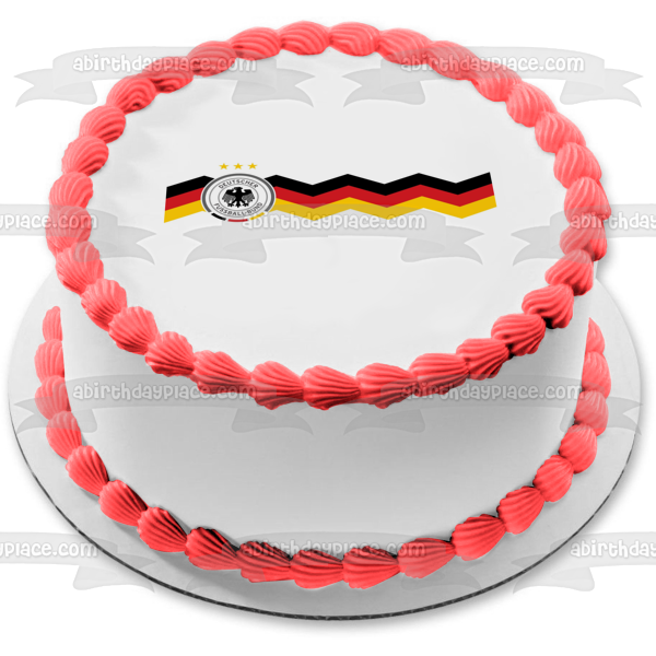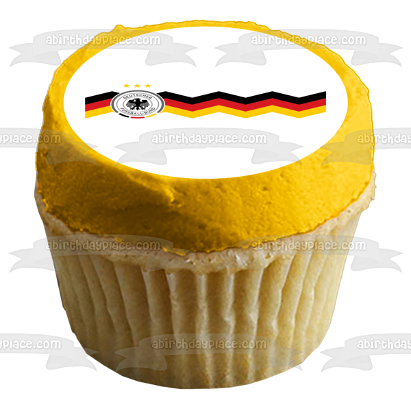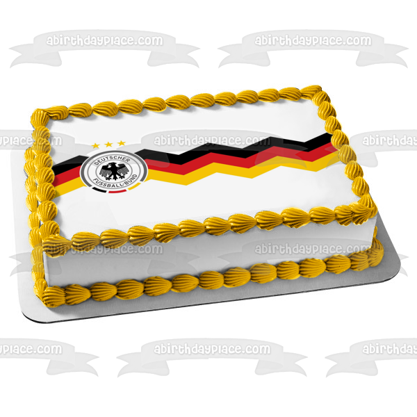 ¡Decora tu pastel con esta imagen de adorno comestible para pastel con el tema de la selección nacional de fútbol de Alemania y su logotipo de la Copa Mundial 2018!