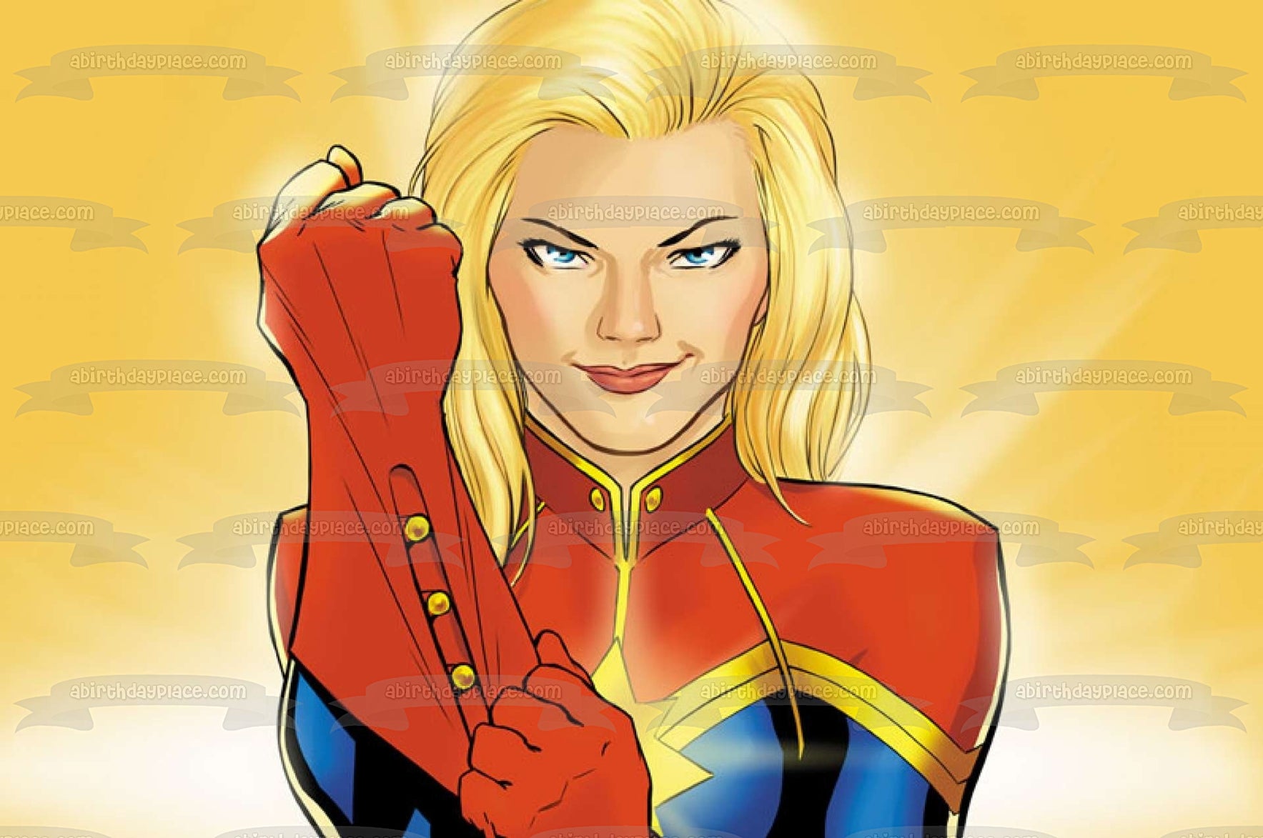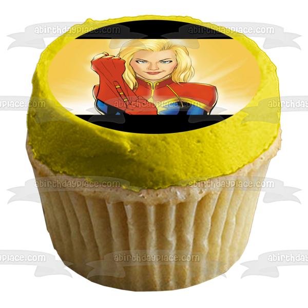 ¡Decora tu pastel con esta imagen de adorno comestible para pastel con temática de Marvel Comics que presenta a Carol Susan Jane Danvers!
