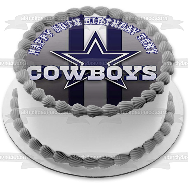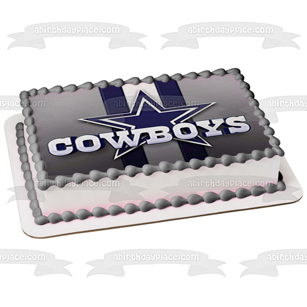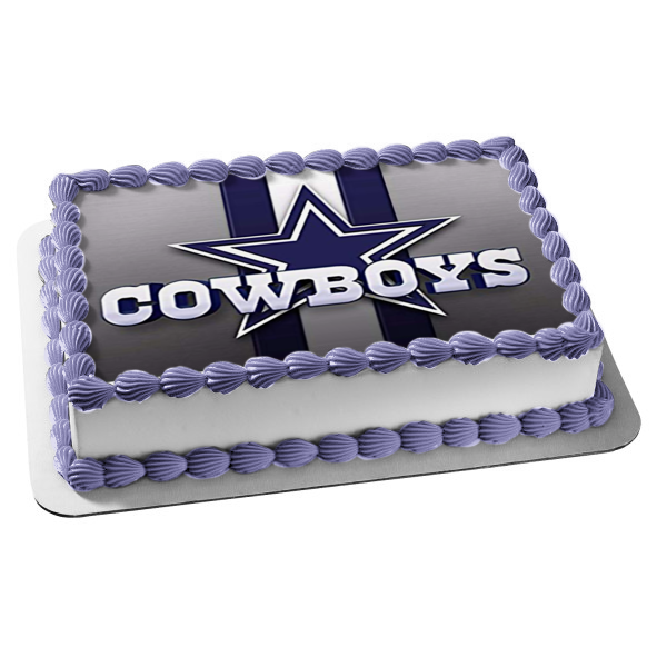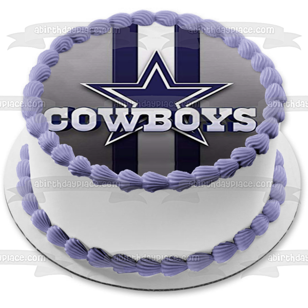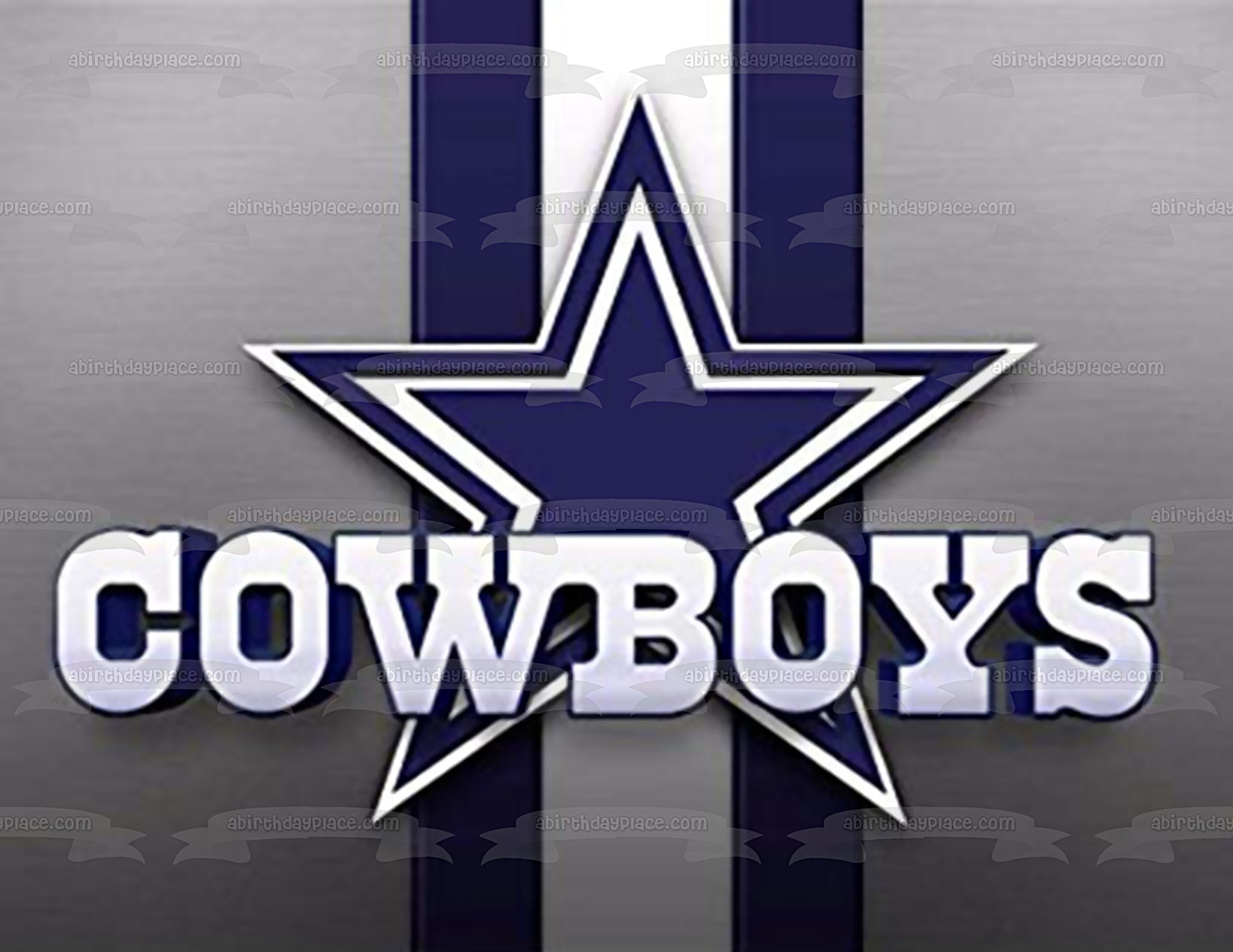 ¡Decora tu pastel con esta imagen de adorno comestible para pastel con temática de los Dallas Cowboys que presenta su logotipo y un fondo de rayas azules!