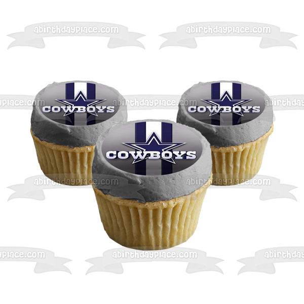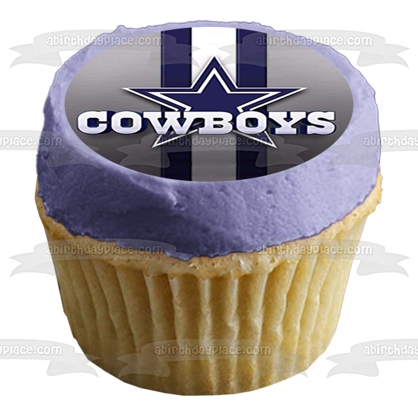 Imagen comestible para decoración de tarta con logotipo de los Dallas Cowboys, fútbol americano, NFL, fondo de rayas azules, ABPID27776