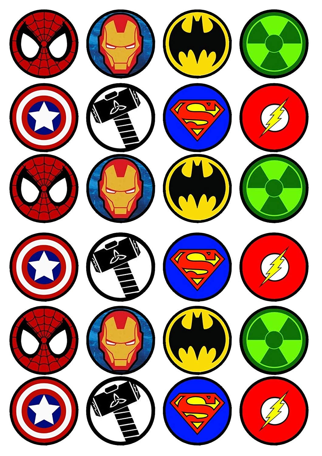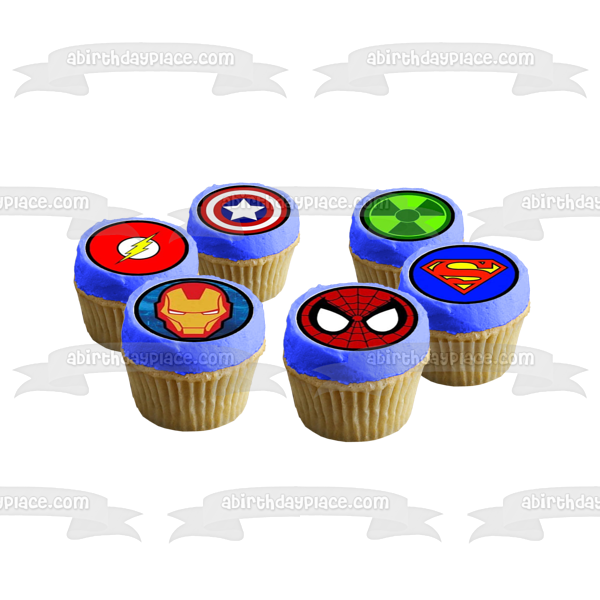 Logotipos de superhéroes DC Marvel Iron Man Spider-Man Super Man Thor the Flash Green Lantern Capitán América Batman Edible Cupcake Topper Imágenes ABPID50389