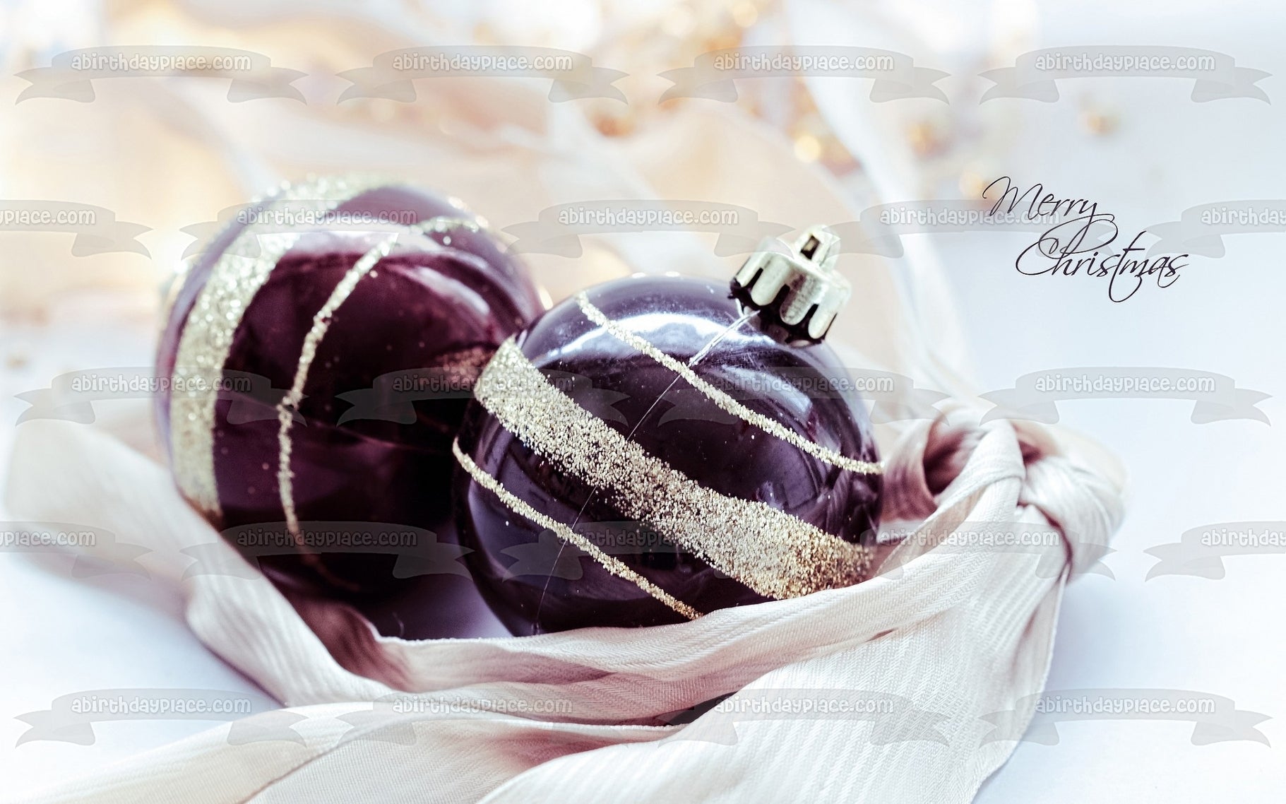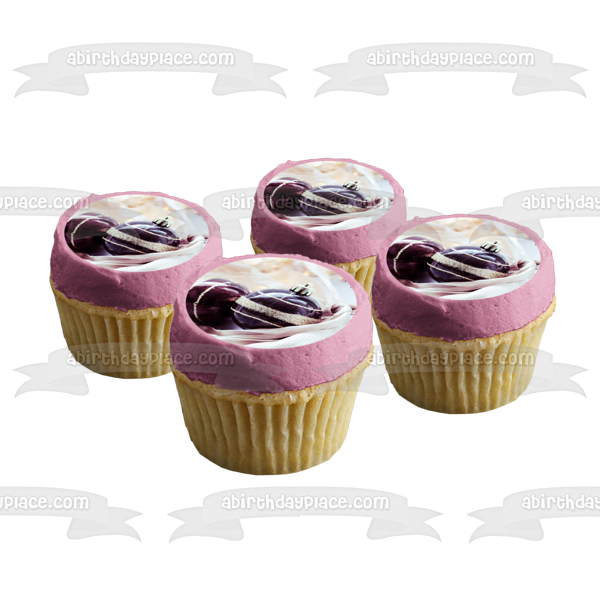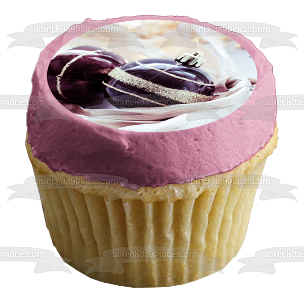 Adornos de bolas de nieve de Feliz Navidad, adorno comestible para tarta con purpurina dorada púrpura, imagen ABPID50636