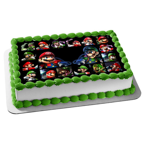 Mario y Luigi Super Mario Bros Luigi's Mansion Adorno comestible para tarta Imagen ABPID50662