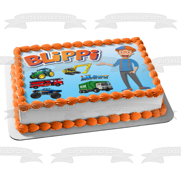 ¡Celebra con Blippi en tu próxima fiesta! ¡Decora tu pastel con esta imagen de adorno comestible para pastel con temática de Blippi que muestra a Blippi con una variedad de vehículos, incluidos un camión monstruo, un camión de bomberos, un camión de basura, un tren, una excavadora y un tractor!