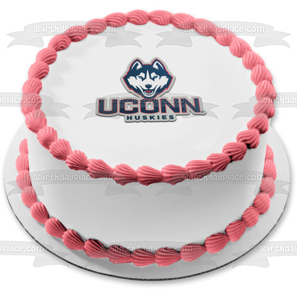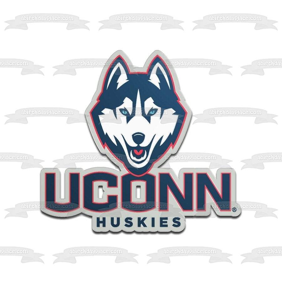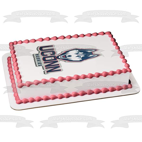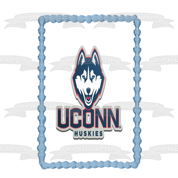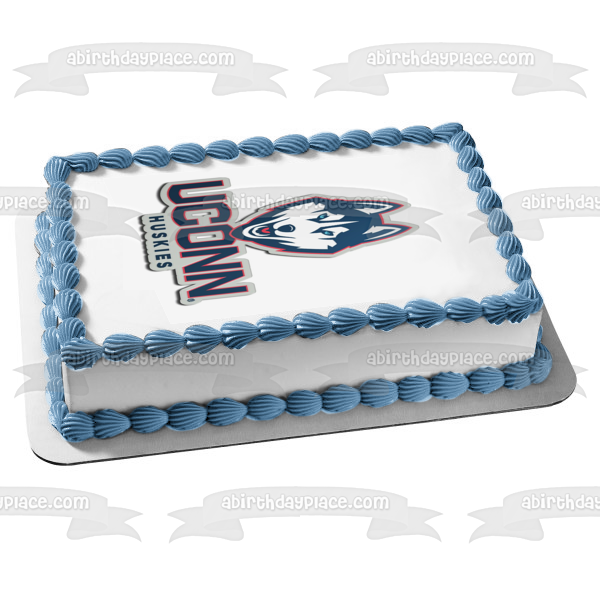 ¡Decora tu pastel con esta imagen de adorno comestible para pastel con temática de la NCAA que presenta el logotipo de los Huskies de la Universidad de Connecticut!